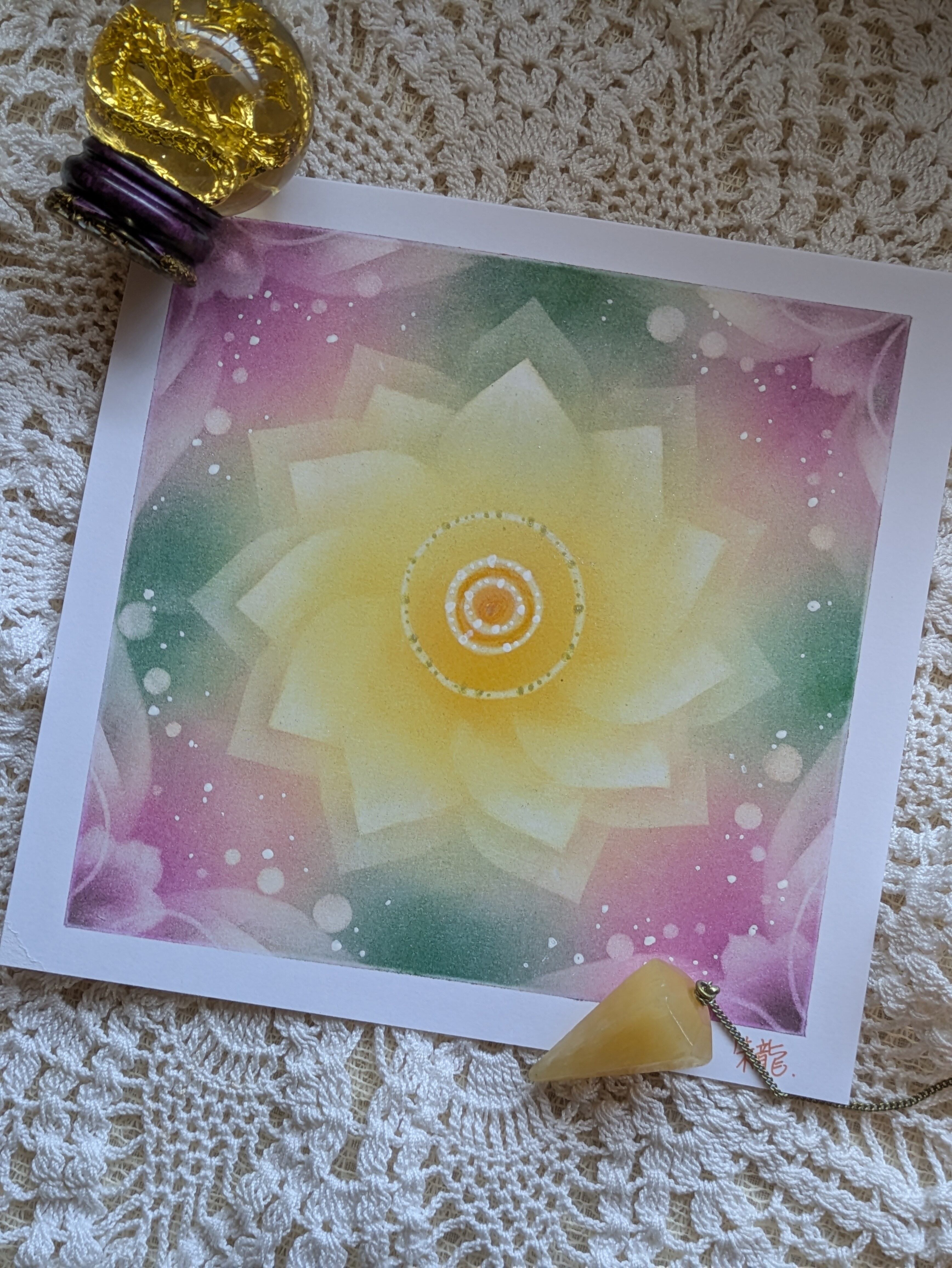 丁寧にあなたの算命学的特徴を分析し、その結果を基にしたパステル画で描かれる曼荼羅アートが魅力的です。心に響く色合いや模様が、あなたのエネルギーを感じさせる作品に仕上がります。アートを眺めることで、心に安らぎと希望をもたらし、あなたの生活に新たな視点を与えてくれることでしょう。